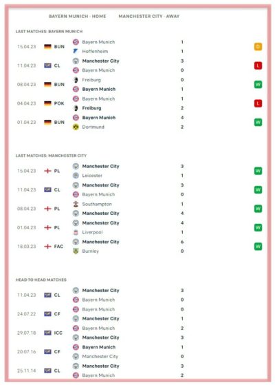 Although it’s difficult to predict a definite winner, we have a tendency to believe that both Manchester City and Bayern Munich will be able to score many goals in this match.